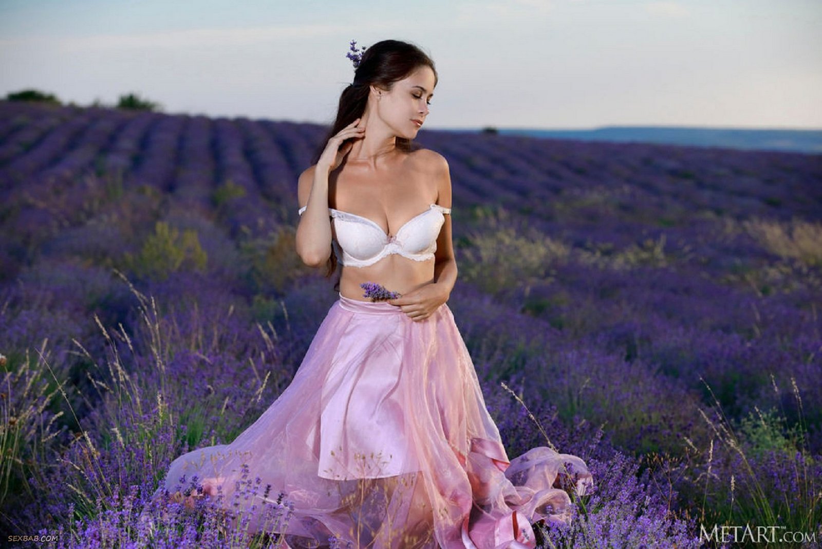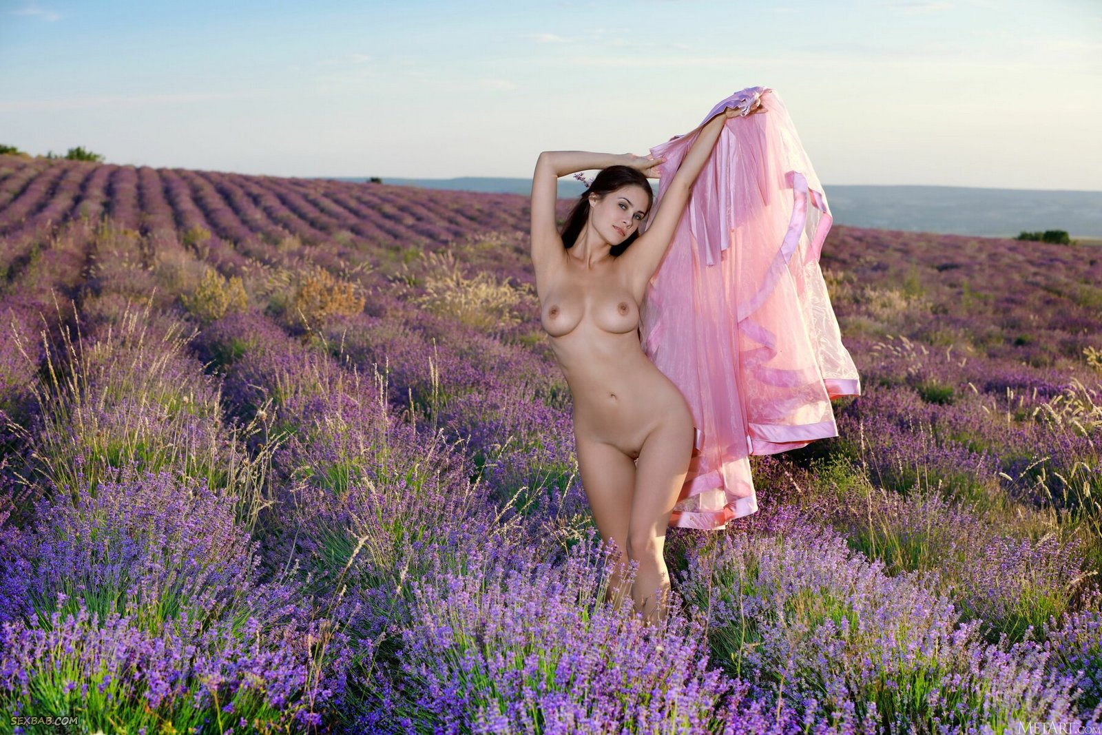 Описание: Эротично позируя перед камерой в лифчике и легкой струящейся юбке, красивая брюнетка с большими сочными сиськами устроила стриптиз на природе. Затем обнаженная девушка ложится в высокую траву с цветами и, нежно поглаживая себя в самых интимных местах, безумно возбуждающе раскрывает перед нами потрясающие виды на голую промежность с бритую писькой.