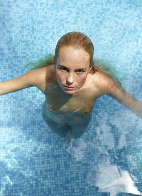 Описание: Искупавшись в бассейне перед фотокамерой, голая светловолосая девушка с сексуальным телом в будущем выбирается из воды и устраивается рядом с ним. Лежа на спине блондинка засвечивает плоские сиськи с торчащими сосочками и бритую письку, а переворачиваясь на животик, она демонстрирует упругую попку.