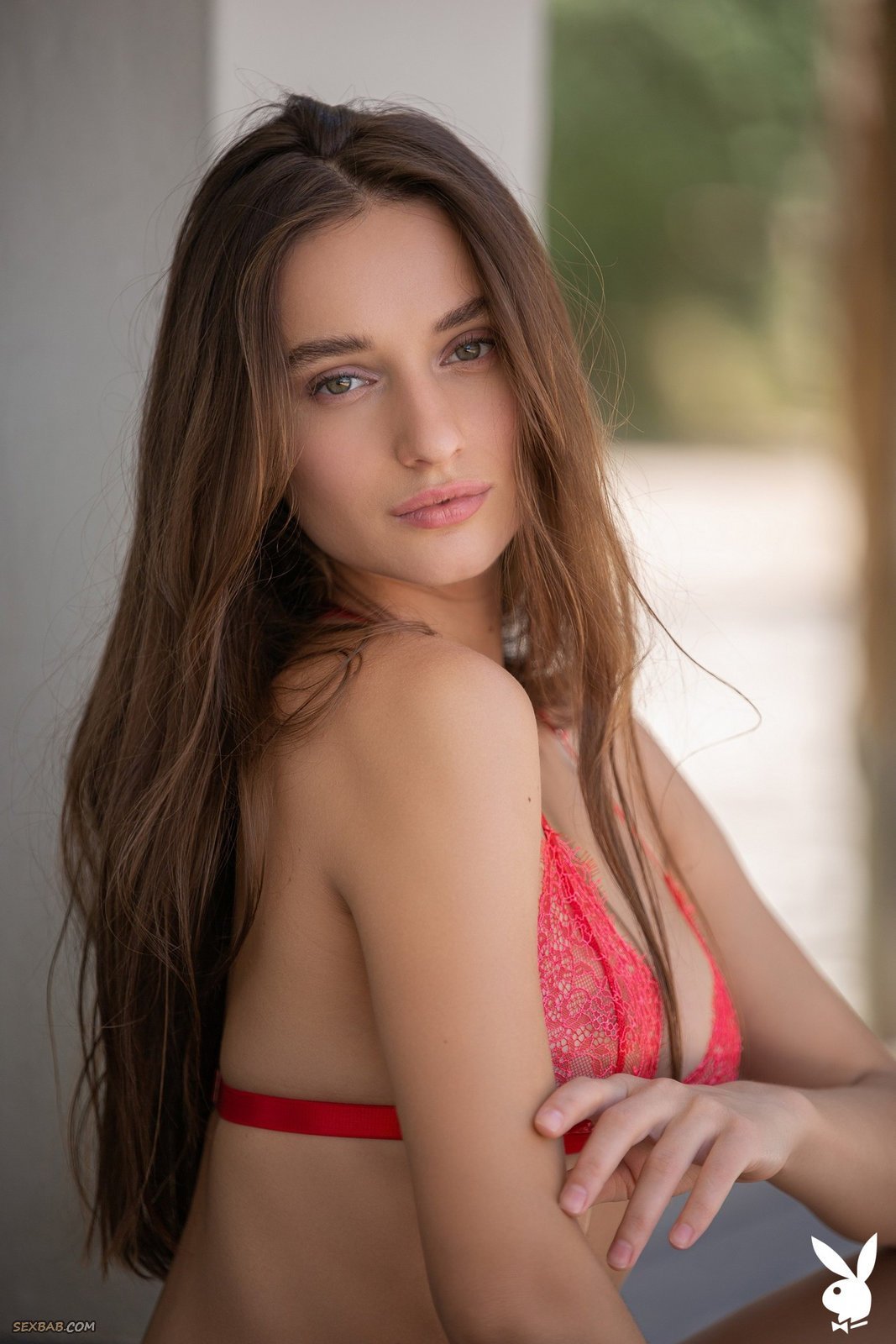 Описание: Способная покорить любого мужчину, сексуальная красотка позирует в красном белье, которое вскоре стягивает и оказывается голой перед фотографом плейбоя. Стройная девушка дарит нам возможность полюбоваться её бритой киской, небольшой упругой грудью и сногсшибательной попкой всегда готовой на приключения.