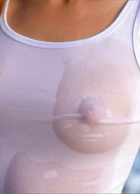 Девушка в мокрой майке без трусов