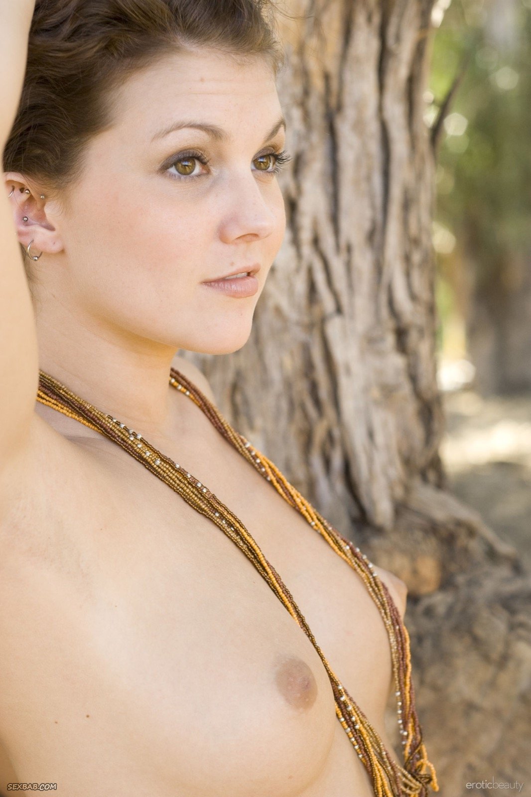 Описание: Стоя у большого дерева в лесу, тридцатилетняя девушка с безумно сочной попой начинает эротично позировать голой. Мило улыбаясь шатенка старалась поворачиваться всеми сторонами, особенно акцентируя внимание на красивых титьках и бритой письке с прической на лобке.
