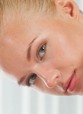 Красивая блондинка намазала сиськи и жопу маслом