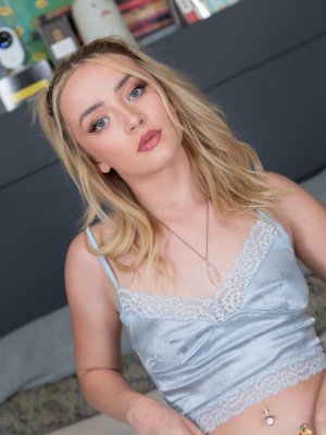 Описание: Делая фотки своего возбужденного тела, худощавая блондинка даже не заметила, как её бойфренд вошел в спальную комнату. Желая порезвиться с парнем в постели, девка схватила за член и приступила к минету. Пососав толстый фаллос любовника, бесстыдница отодвинула голубые стринги в сторонку и присела на торчащий хуй заведенного хахаля.
